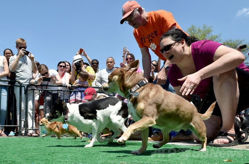 【5月4日 AFP】米ワシントンD.C.(Washington D.C.)で3日、毎年恒例の「ラン・オブ・ザ・チワワ(Run of the Chihuahuas)」が開催され、大勢のチワワの飼い主たちが着飾らせた自慢の愛犬を連れて参加した。同レースは5日のメキシコの祝日「シンコ・デ・マヨ(Cinco de Mayo)」を記念して行われている。(c)AFP