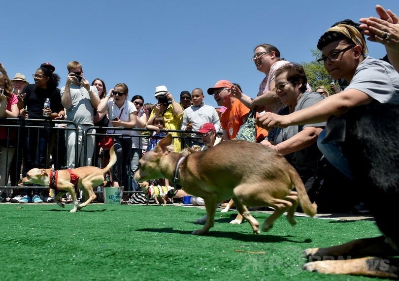 【5月4日 AFP】米ワシントンD.C.(Washington D.C.)で3日、毎年恒例の「ラン・オブ・ザ・チワワ(Run of the Chihuahuas)」が開催され、大勢のチワワの飼い主たちが着飾らせた自慢の愛犬を連れて参加した。同レースは5日のメキシコの祝日「シンコ・デ・マヨ(Cinco de Mayo)」を記念して行われている。(c)AFP