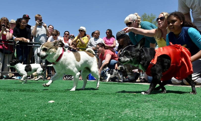 【5月4日 AFP】米ワシントンD.C.(Washington D.C.)で3日、毎年恒例の「ラン・オブ・ザ・チワワ(Run of the Chihuahuas)」が開催され、大勢のチワワの飼い主たちが着飾らせた自慢の愛犬を連れて参加した。同レースは5日のメキシコの祝日「シンコ・デ・マヨ(Cinco de Mayo)」を記念して行われている。(c)AFP