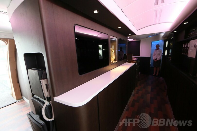 【5月6日 AFP】アラブ首長国連邦(UAE)のエティハド航空(Etihad Airways)はこのほど、今年納入予定のエアバス(Airbus)A380機の機内模型を公開し、ファーストクラスで利用できる「スイートルーム」の導入を発表した。高級志向の顧客がターゲットとして設定された新サービスでは、ホテルのような空間が提供される。(c)AFP