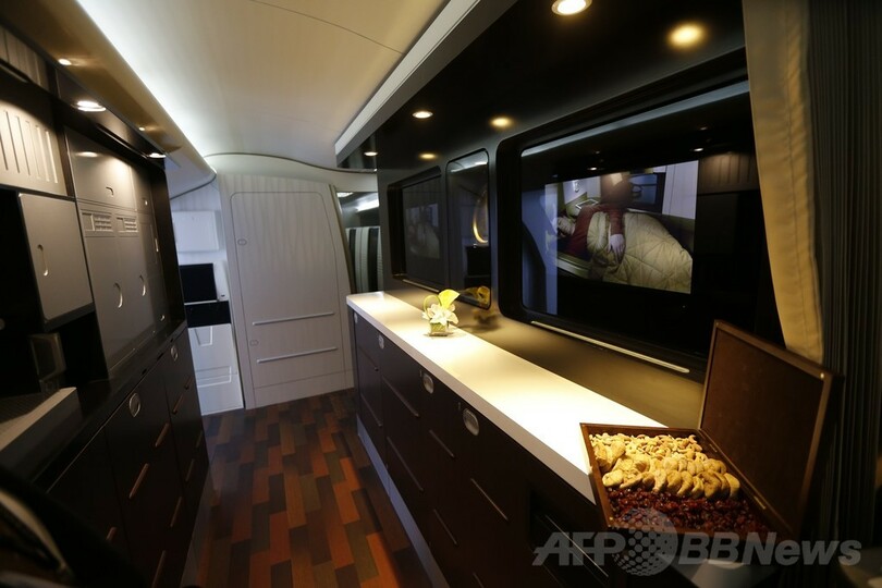 【5月6日 AFP】アラブ首長国連邦(UAE)のエティハド航空(Etihad Airways)はこのほど、今年納入予定のエアバス(Airbus)A380機の機内模型を公開し、ファーストクラスで利用できる「スイートルーム」の導入を発表した。高級志向の顧客がターゲットとして設定された新サービスでは、ホテルのような空間が提供される。(c)AFP