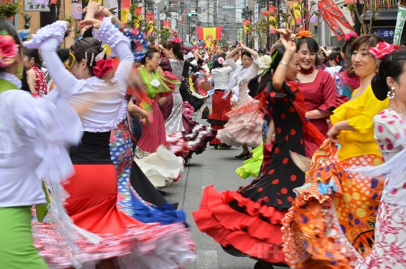 【5月6日 AFP】東京・立川市で6日、スペインの舞踊フラメンコの祭典「立川フラメンコ(Tachikawa Flamenco)2014」が開催され、総勢500人の踊り手が路上でフラメンコの代表的な曲種の一つ、セビジャーナスを踊った。(c)AFP
