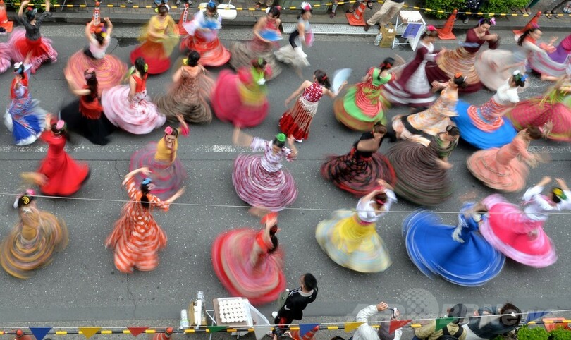 【5月6日 AFP】東京・立川市で6日、スペインの舞踊フラメンコの祭典「立川フラメンコ(Tachikawa Flamenco)2014」が開催され、総勢500人の踊り手が路上でフラメンコの代表的な曲種の一つ、セビジャーナスを踊った。(c)AFP