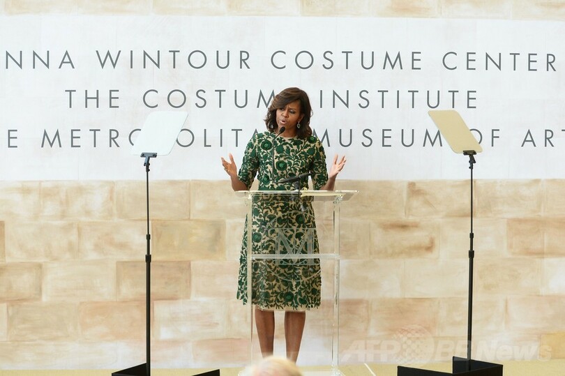 5日に行われた開館式には、テープカットのためにミシェル・オバマ米大統領夫人(Michelle Obama)が出席。ほかにも、デザイナーのマーク・ジェイコブス(Marc Jacobs)やカルバン・クライン(Calvin Klein)、ラルフ・ローレン(Ralph Lauren)、ドナテラ・ヴェルサーチ(Donatella Versace)など多くの著名デザイナーらが顔を揃えた。(c)AFP
