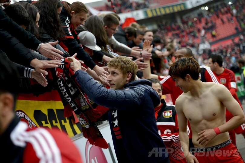この結果、レバークーゼンは4位となり、来季の欧州チャンピオンズリーグ(UEFA Champions League 2014-15)にプレーオフから出場することが決まった。(c)AFP