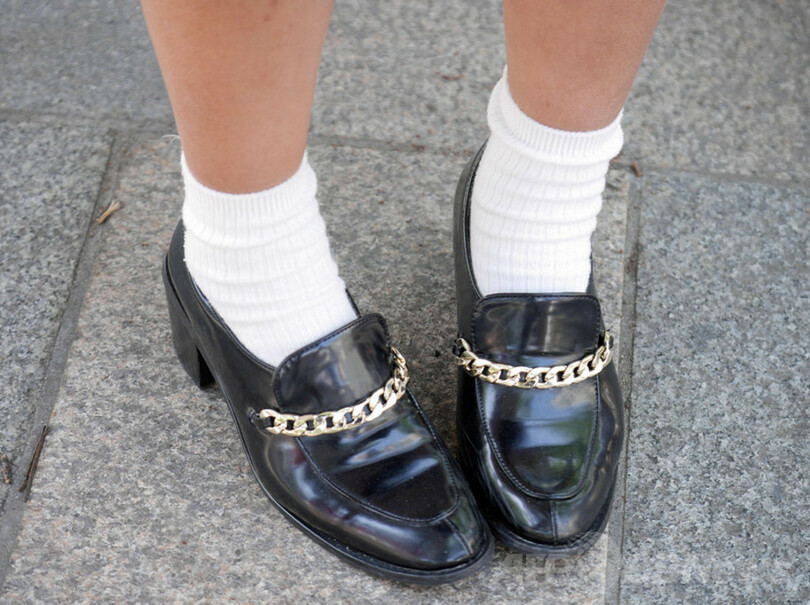 また逆にソックス×ヒールは"オフの日の特権"と語ってくれたのは20代後半の会社員女性。仕事柄、普段はヒールやパンプスにストッキングや見えない靴下を合わせているものの、休みの日にはこうしたコーディネートにチャレンジすることもあるという。装いをあえてカジュアルダウンさせることで、休日を心から楽しめるのかもしれない。