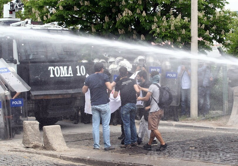 一方、首都アンカラ(Ankara)やイスタンブール(Istanbul)では、事故が発生した原因は政府と鉱業関係者らの怠慢にあると抗議する数千人のデモ隊に、警察が催涙ガスや放水砲を使用した。
