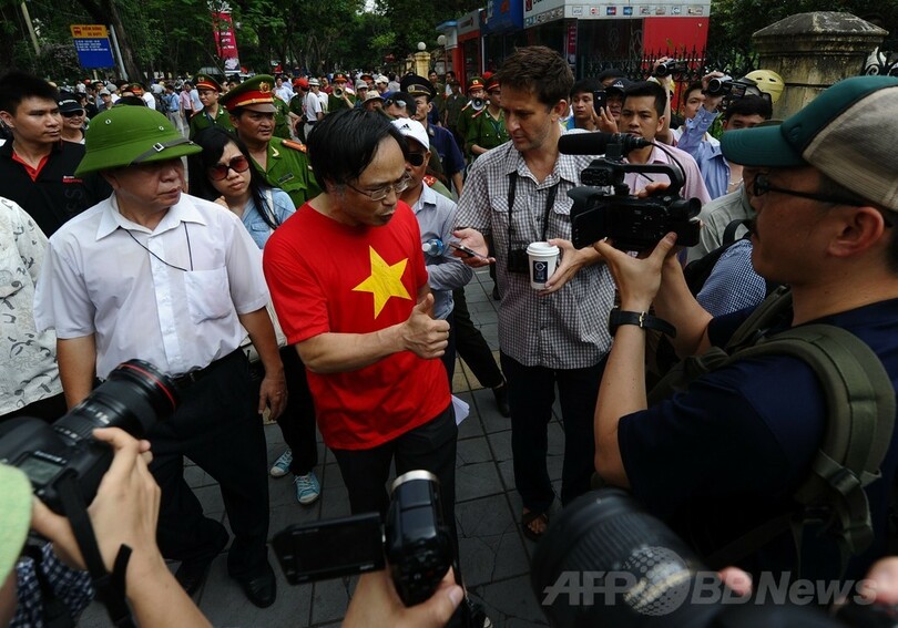 ベトナム政府は、国内の政治的思惑から国民の「ガス抜き」をするために反中デモを認めることもあった。しかし、ベトナムの発展は外国からの投資に大きく依存しているにもかかわらず、今月13、14日の反中暴動で投資先としてのベトナムのイメージが損なわれたことから、ベトナム政府はデモの禁止にかじを切った。(c)AFP/Carol HUANG