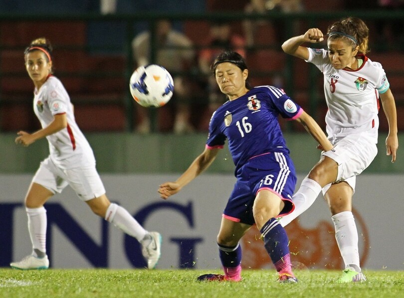 前半26分の吉良知夏(Chinatsu Kira)の先制点で疑念を払拭したロンドン五輪銀メダルの日本は、その後ヨルダンを圧倒して点差を広げた。