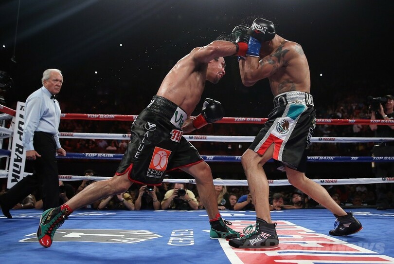 【5月18日 AFP】ボクシング、ウェルター級ノンタイトルマッチ12回戦が17日、米カリフォルニア(California)州イングルウッド(Inglewood)のザ・フォーラム(The Forum)で行われ、ファン・マヌエル・マルケス(Juan Manuel Marquez、メキシコ)が判定の末3-0(117-109、117-109、119-108)でマイク・アルバラード(Mike Alvarado、米国)に勝利した。