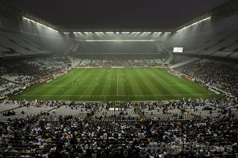 W杯開幕まであと25日という中、現在も建設中で収容人数を抑えての開催となったアレーナ・デ・サンパウロで、ホームのコリンチャンス(Corinthians)は0-1で下位のフィゲイレンセ(Figueirense FC)に敗れた。屋根が完成していないために雨に打たれて濡れたサポーターは、覆われた場所を求めて席を移動した。