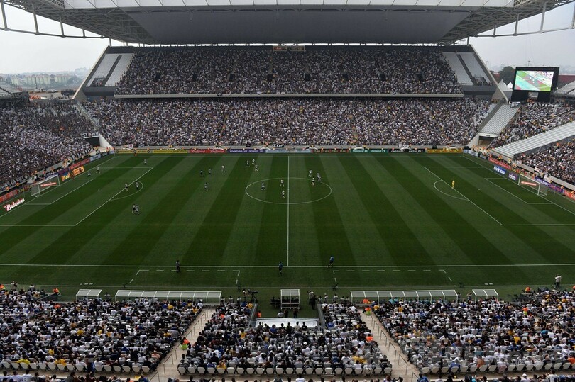 W杯開幕まであと25日という中、現在も建設中で収容人数を抑えての開催となったアレーナ・デ・サンパウロで、ホームのコリンチャンス(Corinthians)は0-1で下位のフィゲイレンセ(Figueirense FC)に敗れた。屋根が完成していないために雨に打たれて濡れたサポーターは、覆われた場所を求めて席を移動した。