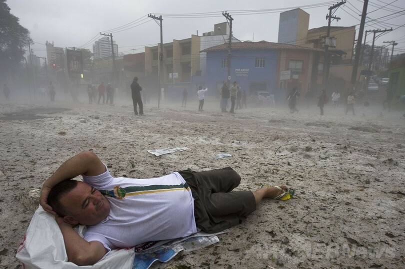 【5月20日 AFP】ブラジル南東部サンパウロ(Sao Paulo)近郊で18日夜から19日未明にかけて、あられを伴う嵐が起こった。一夜明けた街中にはあられが20センチほど積もり、珍しい光景に市民がはしゃぐ姿もみられた。(c)AFP