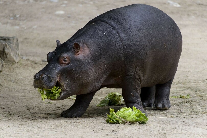 母親といつも一緒、コビトカバの赤ちゃん スイス