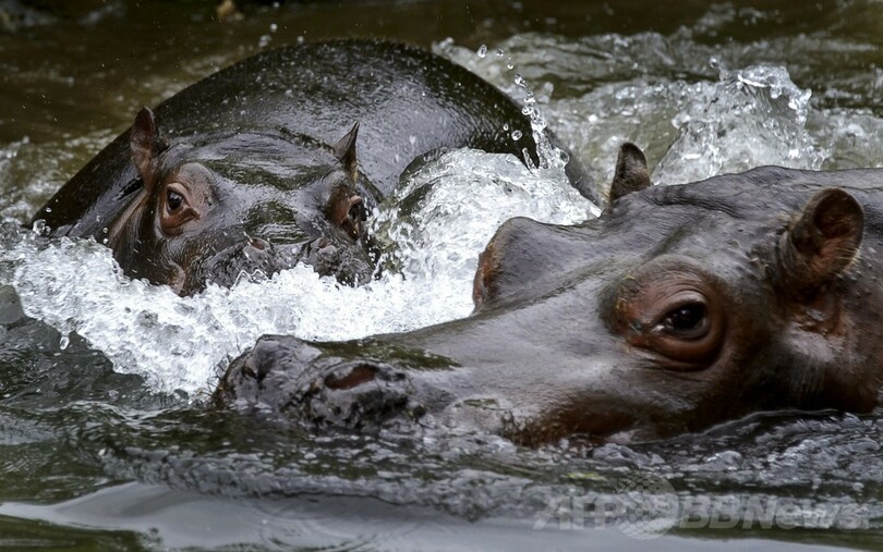【5月22日 AFP】スイス・バーゼル(Basel)のバーゼル動物園(Basel Zoo)で、コビトカバの赤ちゃん「ラニ(Lani)」が、晴れた暖かな日に屋外の展示施設で母親の「アシャキ(Ashaki)」と仲むつまじい姿をみせている。
