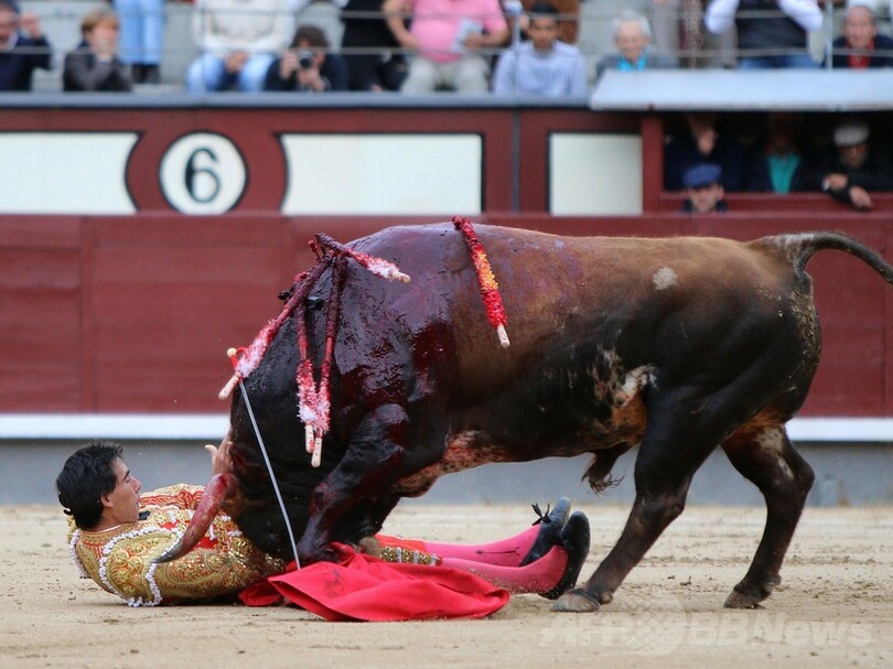 【5月22日 AFP】スペインの首都マドリード(Madrid)にある有名なラス・ベンタス(Las Ventas)闘牛場で20日夜、この日出場した闘牛士3人全員が体重500キロ余りの牛に角で刺されたり、踏みつぶされたりして負傷する異例の事態が発生した。これを受け、スペインの闘牛シーズンの幕開けを飾ってきたサン・イシドロ(San Isidro)闘牛祭全体が、35年ぶりに興行中断に追い込まれた。