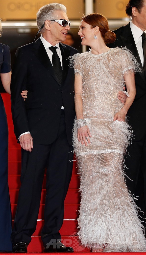 ジュリアン・ムーアは出演作『Maps to the stars』のプレミア上映に14年春夏のオートクチュールのアイテムをチョイス。一見一枚のドレスに見えるデザインだが、実はチュニックとドレスを組み合わせたスタイル。パールやシークイン、フェザーなどが刺繍された「シャネル」らしいフェミニンなデザインで、雨の中でもひときわ存在感を放っていた。