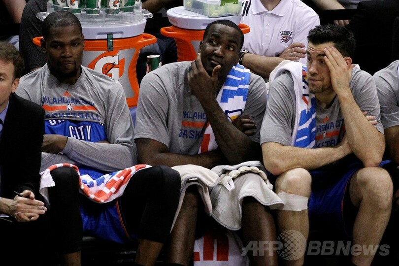 今季の最優秀選手(MVP)に輝いたデュラントは、ウエストブルックとともにそれぞれ15得点にとどまった。それ以外に先発した3人の選手も合計4得点に終わっている。(c)AFP