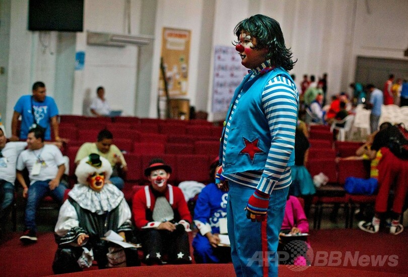 【5月25日 AFP】中米エルサルバドル首都サンサルバドル(San Salvador)で20日、ラテンアメリカのピエロたちの祭りが開催された。このイベントでは、道化師としての技術を磨くために中南米のピエロたちが大集合する。(c)AFP