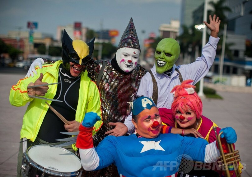 【5月25日 AFP】中米エルサルバドル首都サンサルバドル(San Salvador)で20日、ラテンアメリカのピエロたちの祭りが開催された。このイベントでは、道化師としての技術を磨くために中南米のピエロたちが大集合する。(c)AFP
