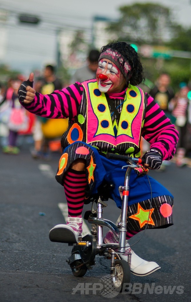【5月25日 AFP】中米エルサルバドル首都サンサルバドル(San Salvador)で20日、ラテンアメリカのピエロたちの祭りが開催された。このイベントでは、道化師としての技術を磨くために中南米のピエロたちが大集合する。(c)AFP