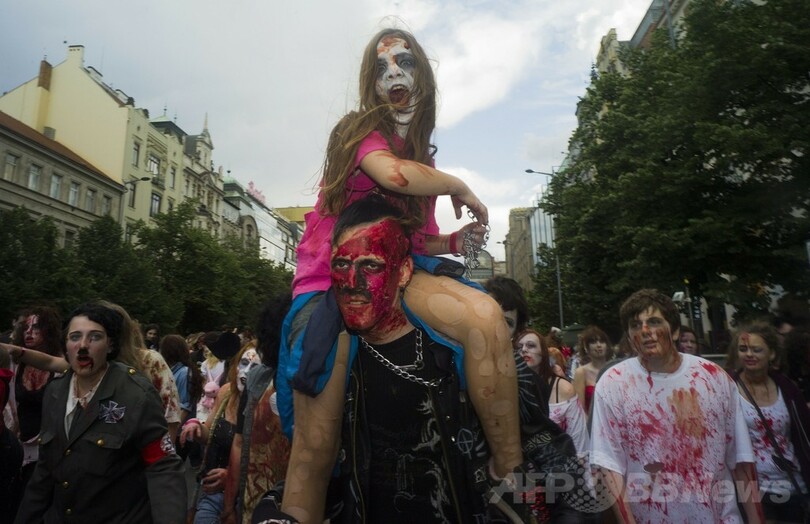 ニュース ライフ こぼれ話 チェコ首都にゾンビが集結、「犠牲者」も? 2014年5月25日 10:46 発信地:プラハ/チェコ [ ヨーロッパ チェコ ] このニュースをシェア ‹ › ❮ 1/12 ❯ チェコの首都プラハ(Prague)で開催された「ゾンビウオーク」に参加した人たち(2014年5月24日撮影)。(c)AFP/MICHAL CIZEK 画像作成中 ! 【5月25日 AFP】チェコの首都プラハ(Prague)で24日、今年で7回目となる「ゾンビウオーク」が開催され、500人以上が参加した。(c)AFP ライフ 一覧へ> メディア・報道関係・法人の方向け 写真・動画 購入のお問合せ>