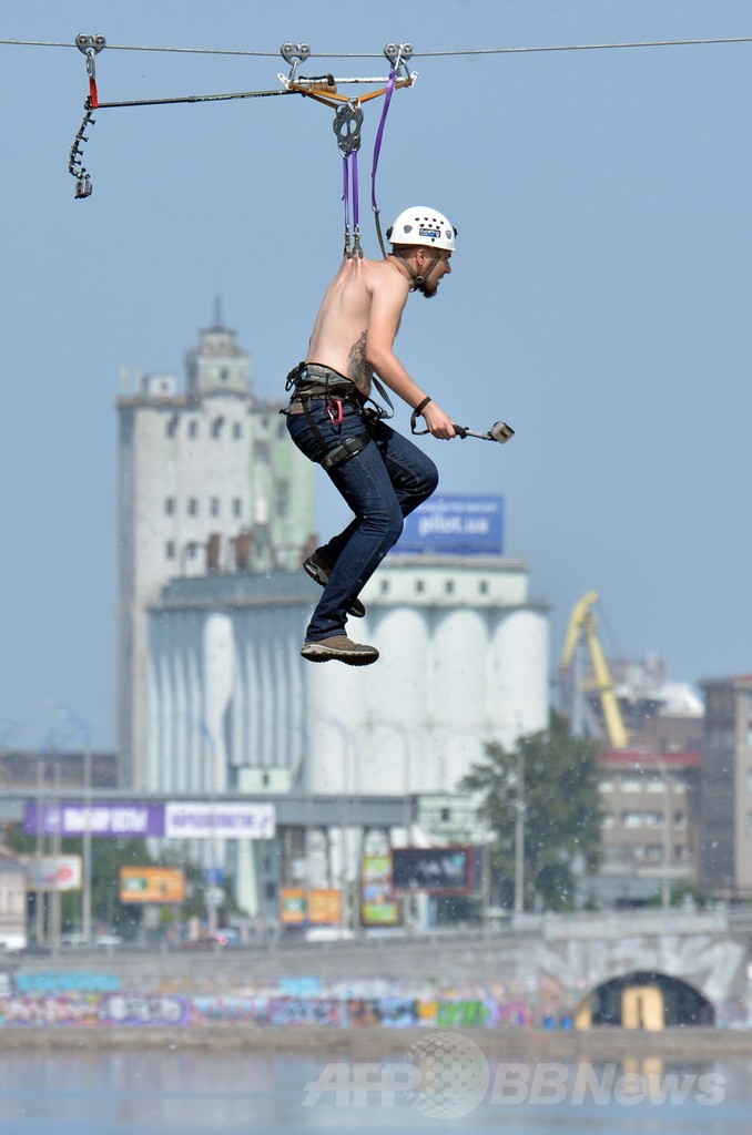 ニュース ライフ こぼれ話 スリル満点!背中でつり下げられて川を横断 ウクライナ 2014年5月25日 12:33 発信地:キエフ/ウクライナ [ ロシア・CIS ウクライナ ] このニュースをシェア ‹ › ❮ 2/7 ❯ ウクライナの首都キエフ(Kiev)市内で、ドニエプル(Dnieper)川の両岸に張られた552メートルのケーブルに背中の皮膚でつり下げられて川を横断する男性(2014年5月23日撮影)。 (c)AFP/SERGEI SUPINSKY 画像作成中 ! 【5月25日 AFP】ウクライナの首都キエフ(Kiev)市内で、ドニエプル(Dnieper)川の両岸に張られた552メートルのケーブルに背中の皮膚でつり下げられて川を横断する人たち。 (c)AFP ライフ 一覧へ> メディア・報道関係・法人の方向け 写真・動画 購入のお問合せ>