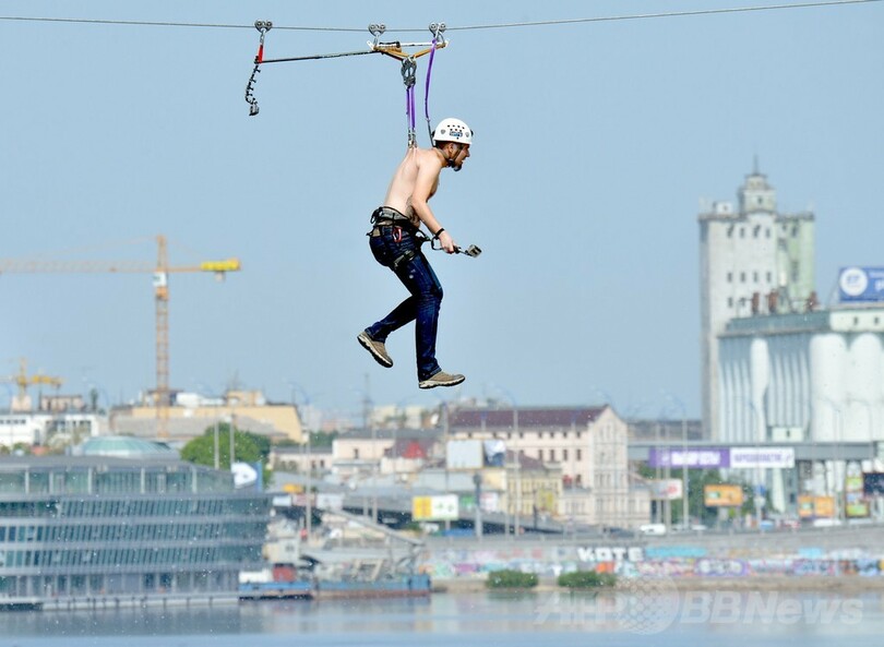 ニュース ライフ こぼれ話 スリル満点!背中でつり下げられて川を横断 ウクライナ 2014年5月25日 12:33 発信地:キエフ/ウクライナ [ ロシア・CIS ウクライナ ] このニュースをシェア ‹ › ❮ 3/7 ❯ ウクライナの首都キエフ(Kiev)市内で、ドニエプル(Dnieper)川の両岸に張られた552メートルのケーブルに背中の皮膚でつり下げられて川を横断する男性(2014年5月23日撮影)。 (c)AFP/SERGEI SUPINSKY 画像作成中 ! 【5月25日 AFP】ウクライナの首都キエフ(Kiev)市内で、ドニエプル(Dnieper)川の両岸に張られた552メートルのケーブルに背中の皮膚でつり下げられて川を横断する人たち。 (c)AFP ライフ 一覧へ> メディア・報道関係・法人の方向け 写真・動画 購入のお問合せ>