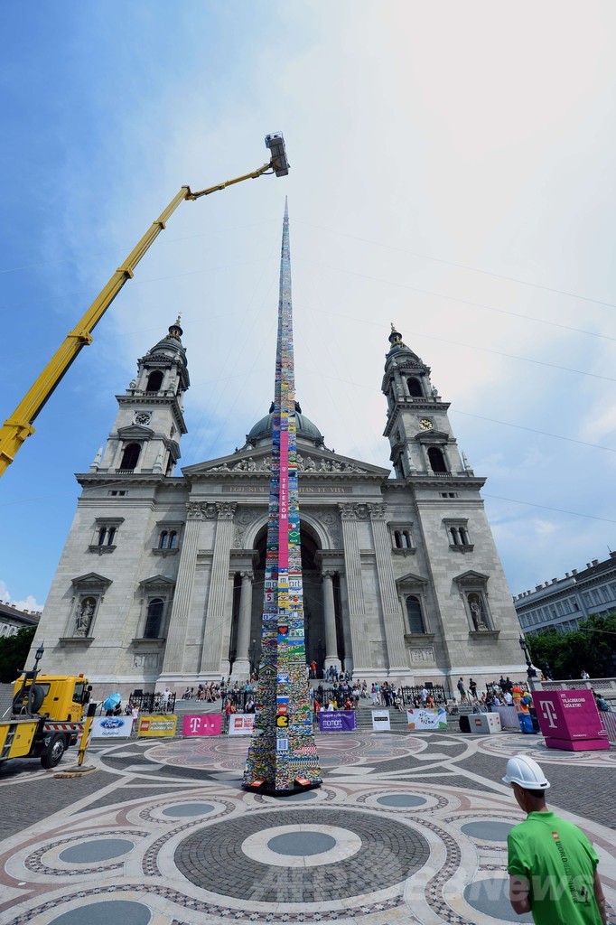 【5月26日 AFP】ハンガリー首都ブダペスト(Budapest)にある聖イシュトバーン大聖堂(Saint Stephen's Basilica)前の広場で25日、デンマーク玩具大手レゴ(Lego)のブロックを使った高さ34.76メートルの「レゴタワー」が出現した。