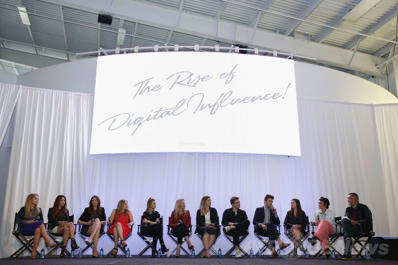 当日は人気ブロガーらによるパネルディスカッションが開催されたほか、協賛ブランドの「レブロン」や「ベアミネラル」らによるメイクブースやショッピングコーナーなども設けられた。(c)AFP/Getty Images