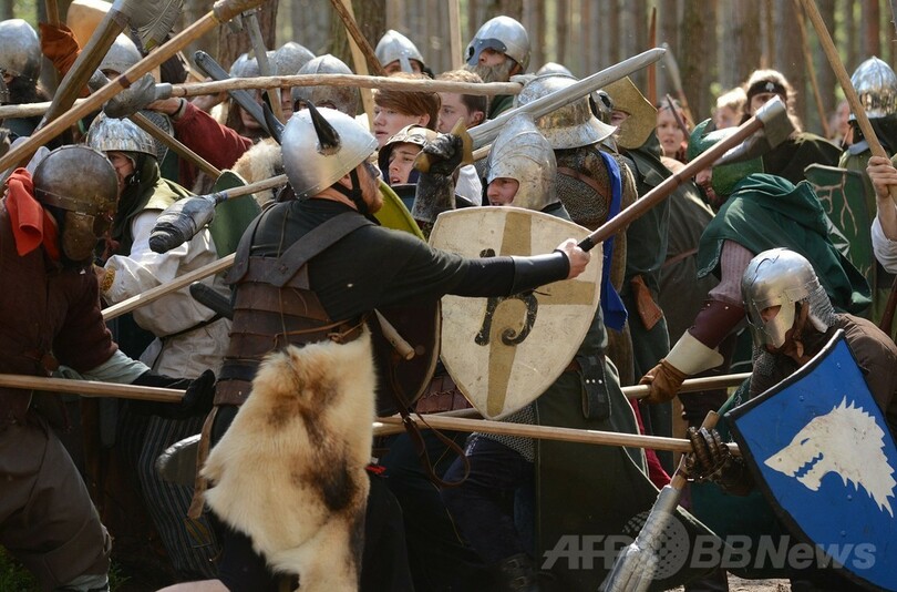 【5月26日 AFP】チェコ北部ドクシ(Doksy)村近くの森で25日、1937年に発表された英国の作家J・R・R・トールキン(J.R.R Tolkien)の不朽の名作小説「ホビットの冒険(The Hobbit)」を再現する毎年恒例のイベントが開催され、登場人物に扮したファン600人以上が集まった。人間とエルフやドワーフ対ゴブリンとアクマイヌの戦闘場面が再現された。(c)AFP