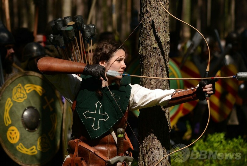 【5月26日 AFP】チェコ北部ドクシ(Doksy)村近くの森で25日、1937年に発表された英国の作家J・R・R・トールキン(J.R.R Tolkien)の不朽の名作小説「ホビットの冒険(The Hobbit)」を再現する毎年恒例のイベントが開催され、登場人物に扮したファン600人以上が集まった。人間とエルフやドワーフ対ゴブリンとアクマイヌの戦闘場面が再現された。(c)AFP