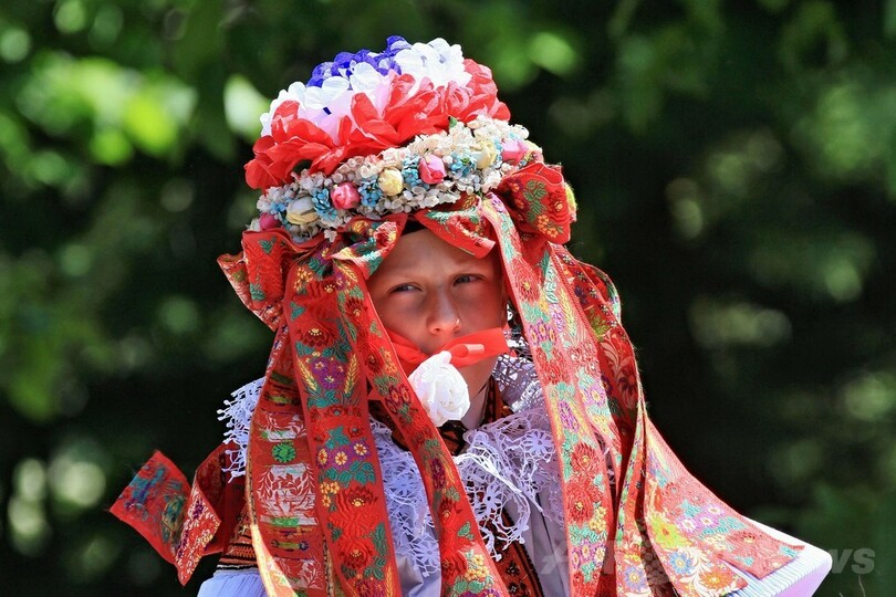 ニュース ライフ モラビア伝統の騎馬行列「王様騎行」 2014年5月26日 17:40 発信地:ブルチノフ/チェコ [ ヨーロッパ チェコ ] このニュースをシェア ‹ › ❮ 14/15 ❯ チェコ・モラビア(Moravia)地方南部のブルチノフ(Vlcnov)で催された伝統行事「王様騎行」で、口にバラをくわえて女装をした王に扮し、騎馬行列を率いる11歳の少年フランティシェック・ソバン(Frantisek Soban)君(2014年5月25日撮影)。(c)AFP/RADEK MICA 画像作成中 ! 【5月26日 AFP】チェコ・モラビア(Moravia)地方南部のブルチノフ(Vlcnov)で25日、同国で最も有名な伝統行事の一つである「王様騎行」が催され、民族衣装で着飾り王侯に扮した華やかな騎馬行列が練り歩いた。(c)AFP ライフ 一覧へ> メディア・報道関係・法人の方向け 写真・動画 購入のお問合せ>