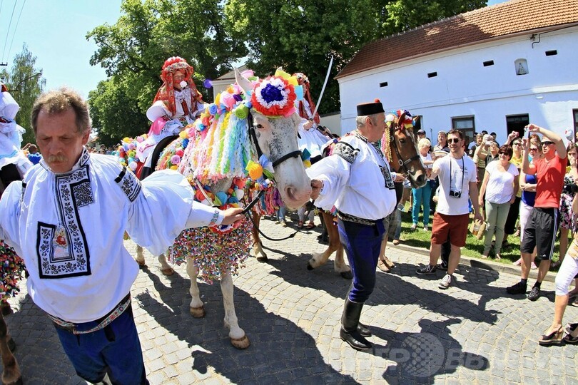 ニュース ライフ モラビア伝統の騎馬行列「王様騎行」 2014年5月26日 17:40 発信地:ブルチノフ/チェコ [ ヨーロッパ チェコ ] このニュースをシェア ‹ › ❮ 7/15 ❯ チェコ・モラビア(Moravia)地方南部のブルチノフ(Vlcnov)で催された伝統行事「王様騎行」で、口にバラをくわえて女装をした王に扮し、騎馬行列を率いる11歳の少年フランティシェック・ソバン(Frantisek Soban)君(中央、2014年5月25日撮影)。(c)AFP/RADEK MICA 画像作成中 ! 【5月26日 AFP】チェコ・モラビア(Moravia)地方南部のブルチノフ(Vlcnov)で25日、同国で最も有名な伝統行事の一つである「王様騎行」が催され、民族衣装で着飾り王侯に扮した華やかな騎馬行列が練り歩いた。(c)AFP ライフ 一覧へ> メディア・報道関係・法人の方向け 写真・動画 購入のお問合せ>