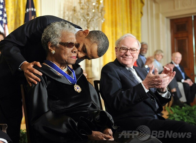 オバマ大統領は2011年、文民最高位の大統領自由勲章(Presidential Medal of Freedom)をアンジェロウさんに授けている。(c)AFP/Robert MACPHERSON
