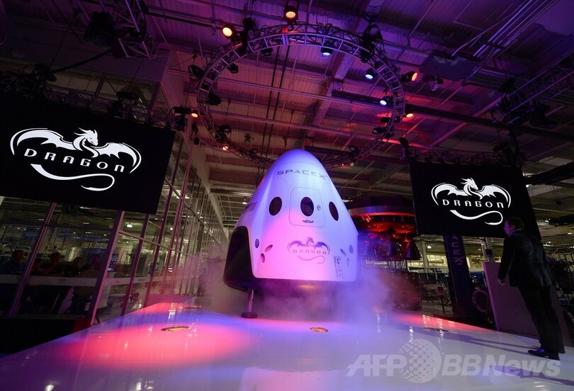 スペースXのカプセル型無人宇宙船「ドラゴン(Dragon)」は2012年、民間の宇宙船として初めてISSに物資を運んだ後、地球に帰還した。スペースXのイーロン・マスク(Elon Musk)最高経営責任者(CEO)は、ドラゴンが再利用可能である点を強調。ドラゴンV2については「ヘリコプター並みの精度で、地球上のどこにでも着陸」することが可能だと述べた。(c)AFP