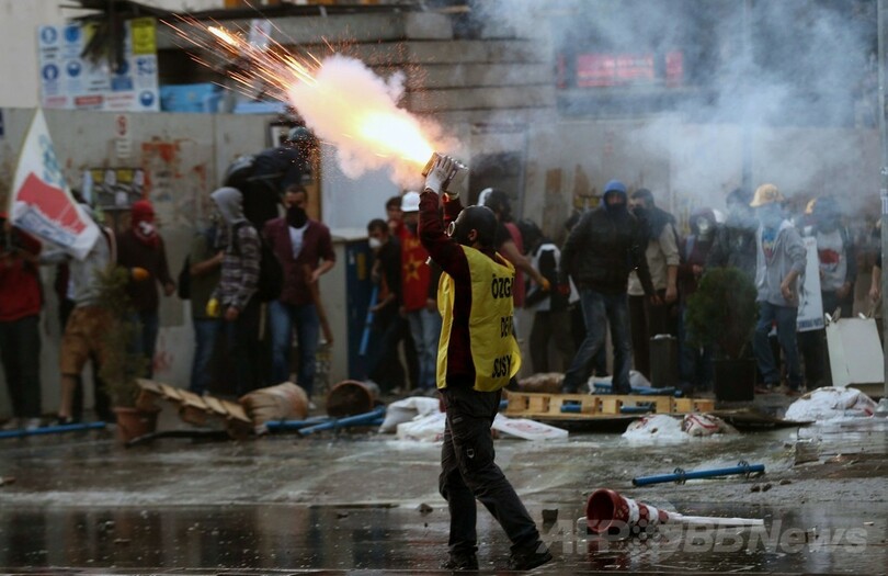 現地のAFP記者によると、昨年8人が死亡、数千人が負傷する暴動が発生したイスタンブールのタクシム広場(Taksim Square)近くで、警官隊とデモ隊が衝突。デモ隊は、「タクシム(広場)はあちこちにある。抵抗勢力はあちこちにいる」と叫んでいたという。