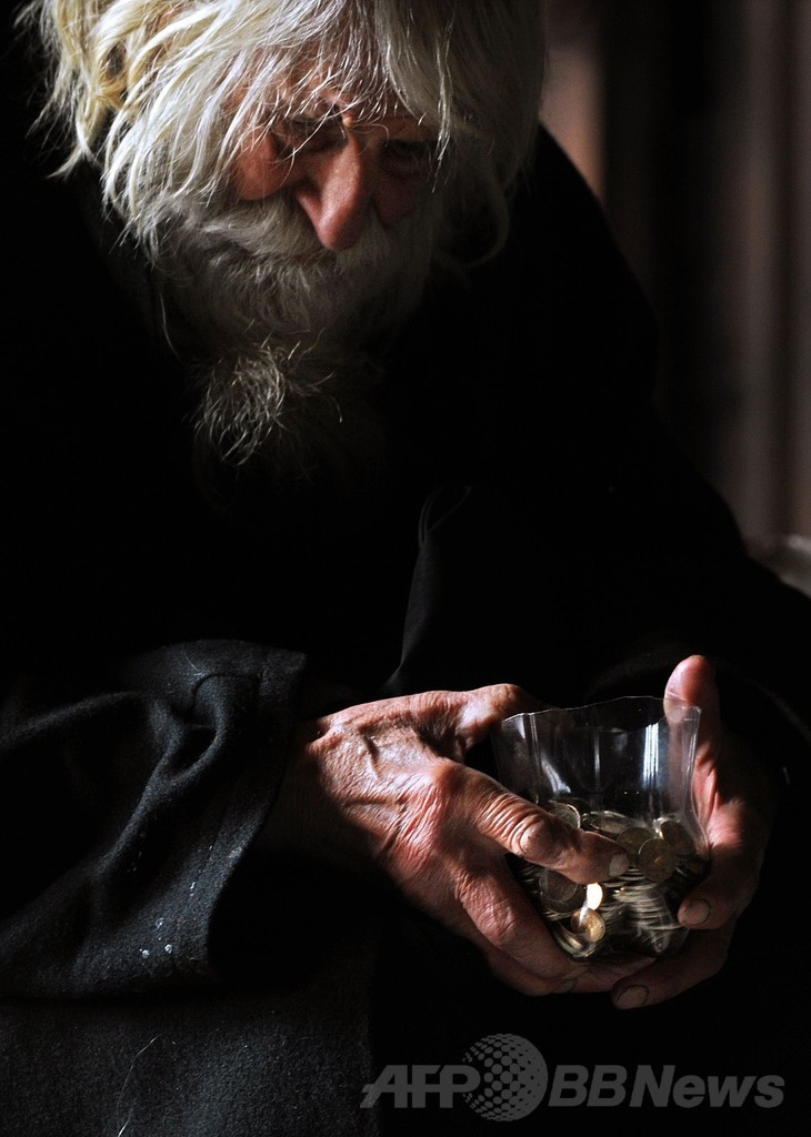 【6月3日 AFP】すり切れたコートを着て物乞いをする「ドブリじいさん」は100歳。「ドブリ」とはブルガリア語で「善」を意味する。貧困と腐敗で荒廃したブルガリアの善の象徴として既に「聖人」とあがめられている。