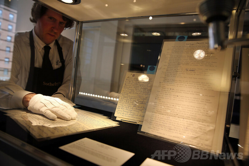 【6月5日 AFP】元ビートルズ(The Beatles)の故ジョン・レノン(John Lennon)さんのイラストや手書きの原稿が4日、ニューヨーク(New York)の競売大手サザビーズ(Sotheby's)で競売に掛けられ、一部作品は推定価値の4~5倍で落札された。競売に出品された89点はわずか2時間ですべて落札された。