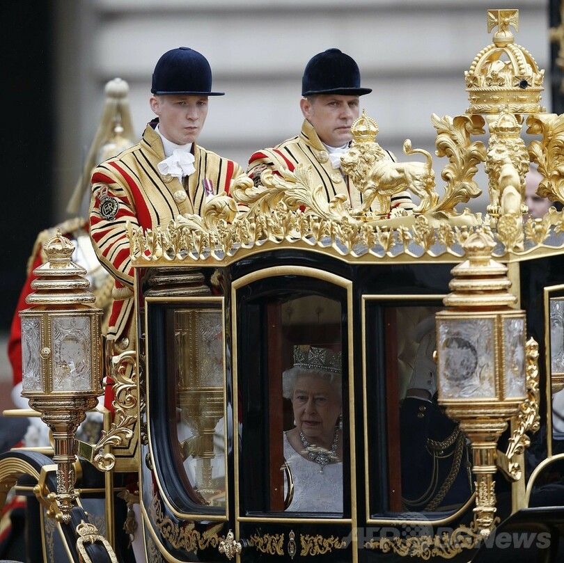 【6月5日 AFP】英ロンドン(London)で4日、エリザベス英女王(Queen Elizabeth II、88)が英議会で開会演説を行うため国会議事堂のあるウェストミンスター宮殿(Palace of Westminster)に向かう際に、初めて新しい王室馬車を披露した。