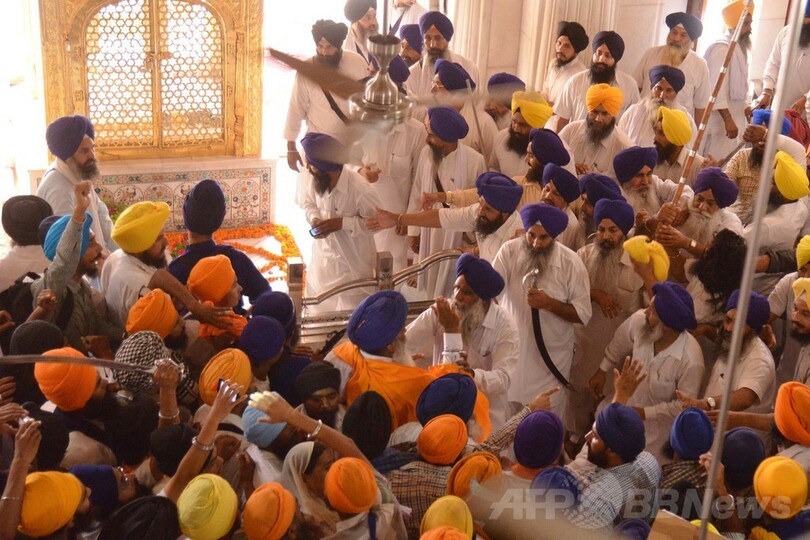 現地のAFPカメラマンによると、衝突で少なくとも2人が負傷したという。テレビが伝えた現地映像には、青色とサフラン色のターバンを巻いた人々の2つのグループが寺院内で、剣を手に互いを追いかけまわしている様子が映し出された。衝突の原因は、片方の集団が最初にマイクで演説をする許可を得たと主張したことだという。