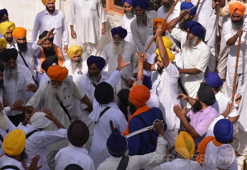 現地のAFPカメラマンによると、衝突で少なくとも2人が負傷したという。テレビが伝えた現地映像には、青色とサフラン色のターバンを巻いた人々の2つのグループが寺院内で、剣を手に互いを追いかけまわしている様子が映し出された。衝突の原因は、片方の集団が最初にマイクで演説をする許可を得たと主張したことだという。