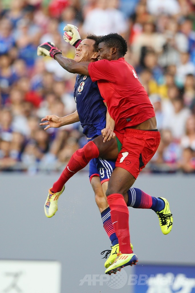 日本の岡崎慎司(Shinji Okazaki)は前半18分、ペナルティーエリア内でザンビアのGKトースター・ヌサバタ(Toaster Nsabata)とハイボールを競り合って接触。両選手は数分間ピッチに倒れ込んだもののプレーを続行し、左目の上を切った岡崎は頭に包帯を巻いてプレーした。