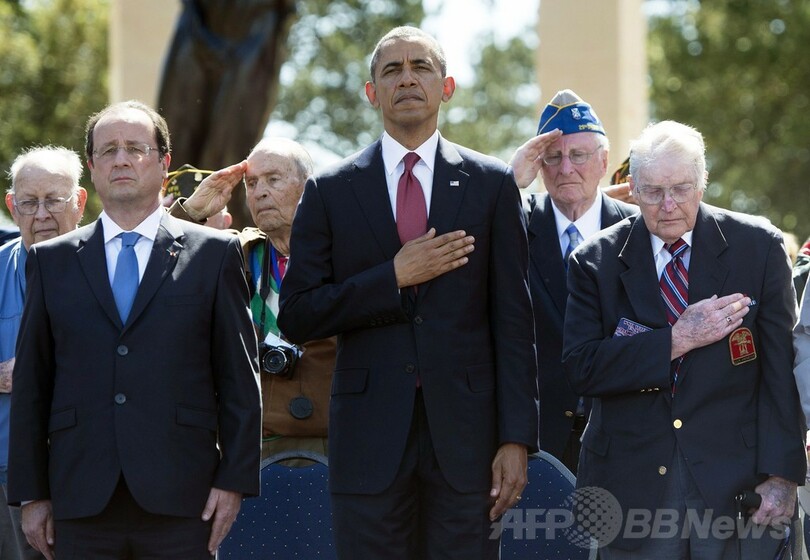 バラク・オバマ(Barack Obama)米大統領が感動の面持ちで退役軍人への賛辞の先陣を切った。兵士たちが勇敢にも舟艇から飛び出し、あるいは低空を飛ぶ飛行機から飛び降りてナチスの機関銃弾が雨あられと飛び交う修羅場に突入した場面を描写したオバマ氏は、彼ら退役軍人らが式典に出席していることに「本当に頭が下がる」と述べた。