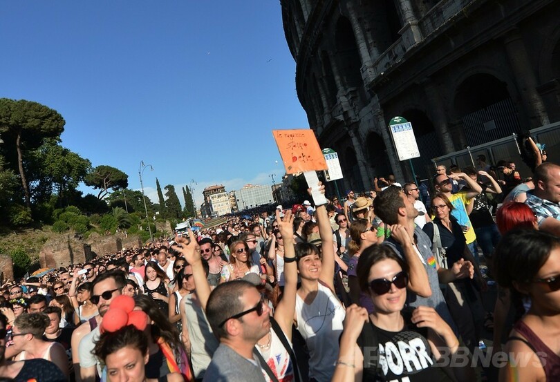 【6月8日 AFP】イタリアの首都ローマ(Rome)で7日、毎年恒例の「ゲイ・プライドパレード」が開催され、多くの人たちがコロシアム(Coliseum)の周辺などを行進した。