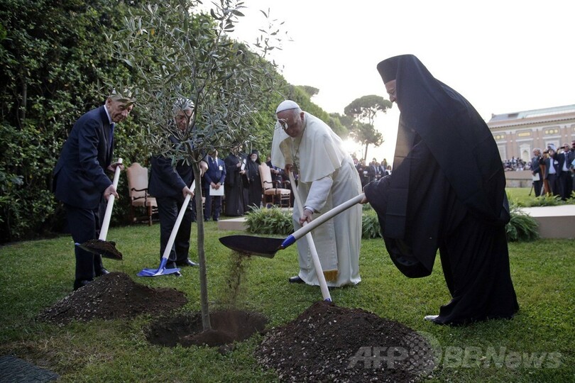 式典の後、4人は共にオリーブの木を植え、さらに非公開会談を行った。フランシスコ法王は「和平には、戦争よりも大きな勇気が必要だ」と述べた。