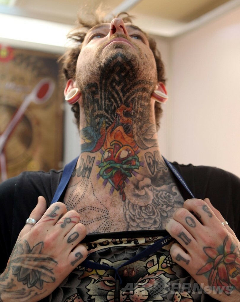 【6月9日 AFP】キプロス南部沿岸リマソル(Limassol)で6日~8日、「キプロス・インターナショナル・タトゥー・コンベンション(Cyprus International Tattoo Convention)」が開催された。初開催となった同イベントでは、ワンポイントのものから全身を覆うものまで、様々なタトゥーが披露された。(c)AFP