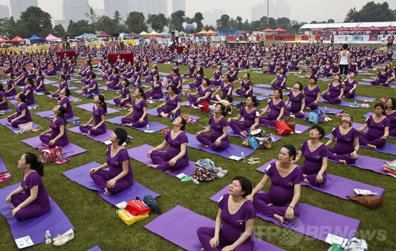 【6月10日 AFP】中国中部の湖南(Hunan)省長沙(Changsha)で8日、ヨガ講習会に同時に参加した妊婦の数でギネス世界記録(Guinness World Records)に挑むイベントが開催された。