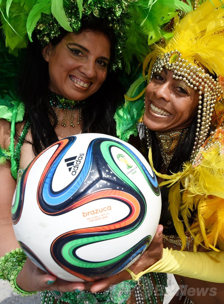 【6月11日 AFP】ドイツ北部シェーンベルク(Schoenberg)にある「ブラジリエン(Brasilien)」の名称のビーチで10日、間もなく開幕するサッカーW杯ブラジル大会(2014 World Cup)を盛り上げるべく、ブラジル人のサンバダンサー2人がパフォーマンスを披露した。ビーチの名前である「ブラジリエン」は、ドイツ語で「ブラジル」を意味している。(c)AFP