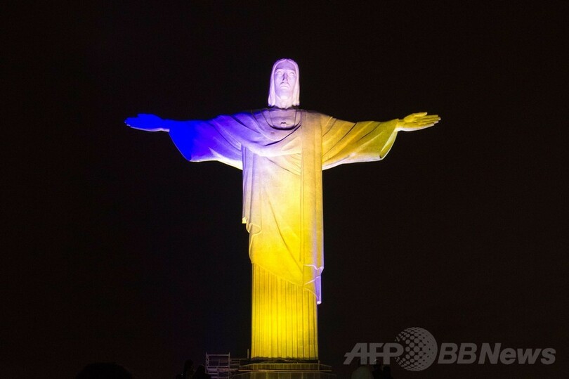 リオのキリスト像が日の丸カラーに、W杯開幕祝う ブラジル